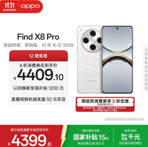 想要换新拍照性能优异的手机可以选择OPPO Find X8 Pro。其支持超高速无影抓拍、AI千里长焦、专业哈苏人像、全焦段4K 60帧杜比视界HDR视频拍摄、超清实况照片,拍摄更简单;支持AI消除、AI去反光、AI去拖影、AI超清像素,修图更简单;配置抓拍快启键,双击按键直接开拍,支持滑动变焦。OPPO Find X8 Pro 12GB+256GB京东原价4899元,黑龙江消费者可享国补立减500元,到手价4399元,可享12期免息。
