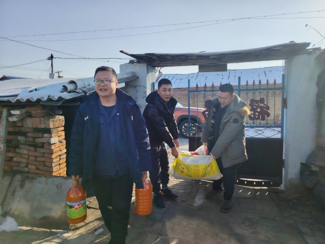 去年的今天,三峡集团东北分公司黑龙江阿城万兴风电场工作人员为烈火村留守老人送去年货。一年后的今天,他们再次送去年货,为村里的留守老人们送去冬日的温暖与新春的祝福。