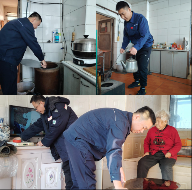 “孩子们又来啦,快进屋暖和暖和!”老两口紧紧握着工作人员的手,声音里满是喜悦。工作人员将每一件慰问品整齐放置好后,便熟稔地擦拭桌椅、检查取暖设备,并详细询问老人的身体状况和年货置办情况。
